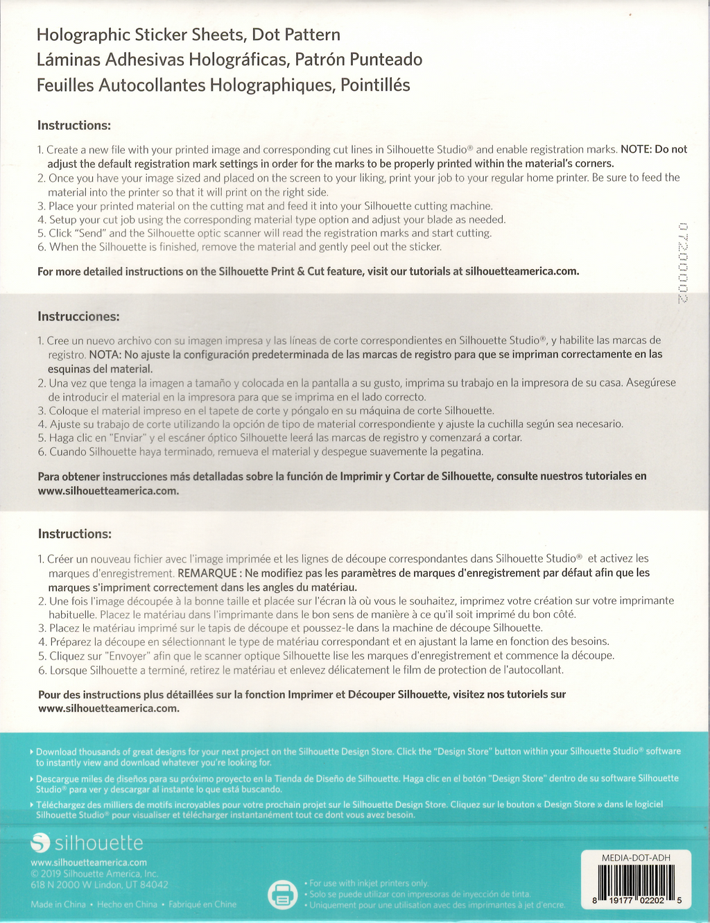 Create labels and stickers with a unique look using Holographic Dots Sticker Sheets. This material has a printable surface and an adhesive backing. The sticker surface's holographic dots effect shows through printed images.