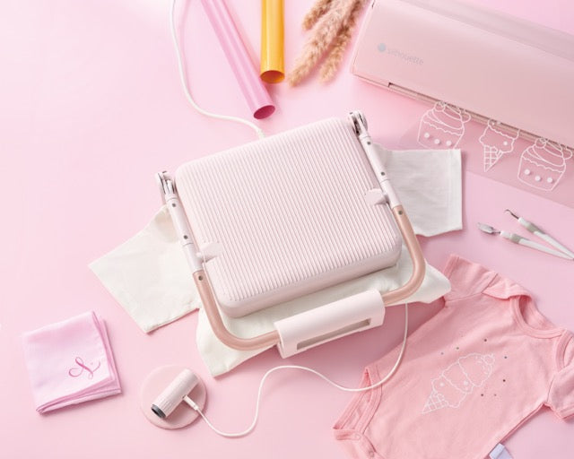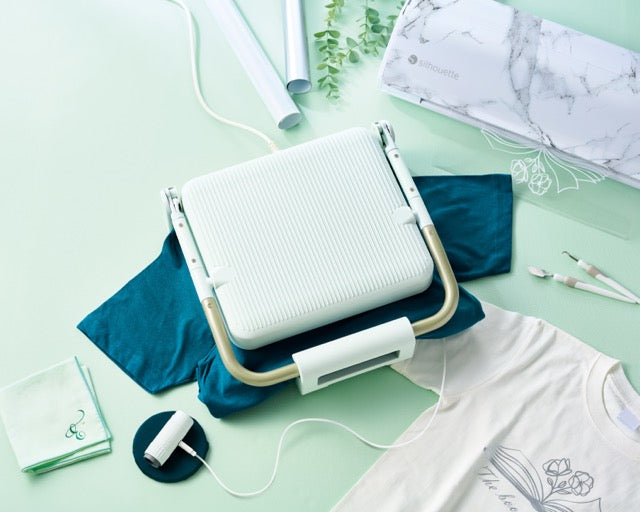 The Silhouette cloChé is a stylish, portable heat press system designed for custom apparel, accessories, and home décor. Compact yet powerful, it includes the cloChé main heat press and the cloChé Petite mini press, giving makers added flexibility for both larger projects and small, curved, or hard-to-reach surfaces.